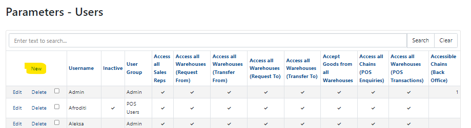 4. The Access you give to your new user will determine his/her permitions in the system. If you do not do it correctly, the User will not be able to do his/her job. If you are sure that you have set up the User correctly in the system you can proceed.