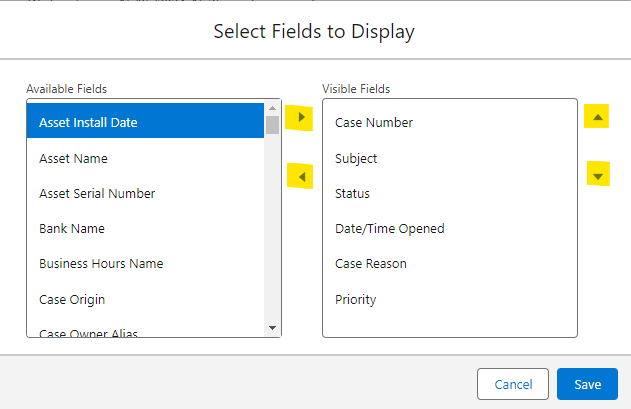 To add a new field to your list view, select it and click on right arrow. It will be added from Available Fields to Visible Fields.