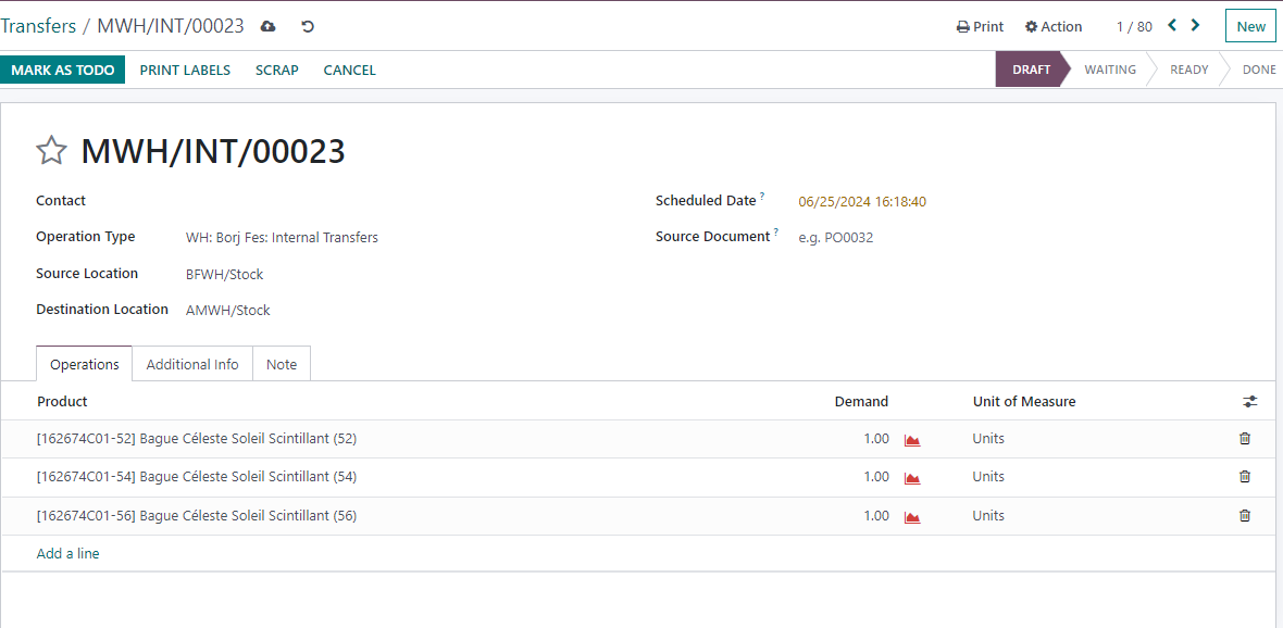 5. Click on "Import". This will create the transfer with all the products in "Draft" status.