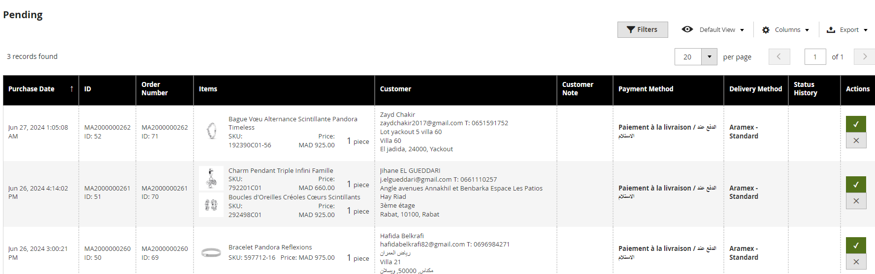 3. You can see all the order details and on the right side, you can see action buttons to confirm or reject products in every order.