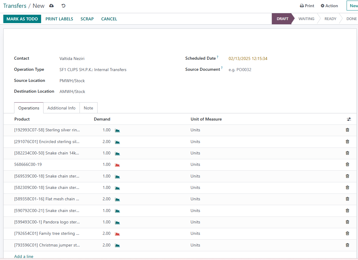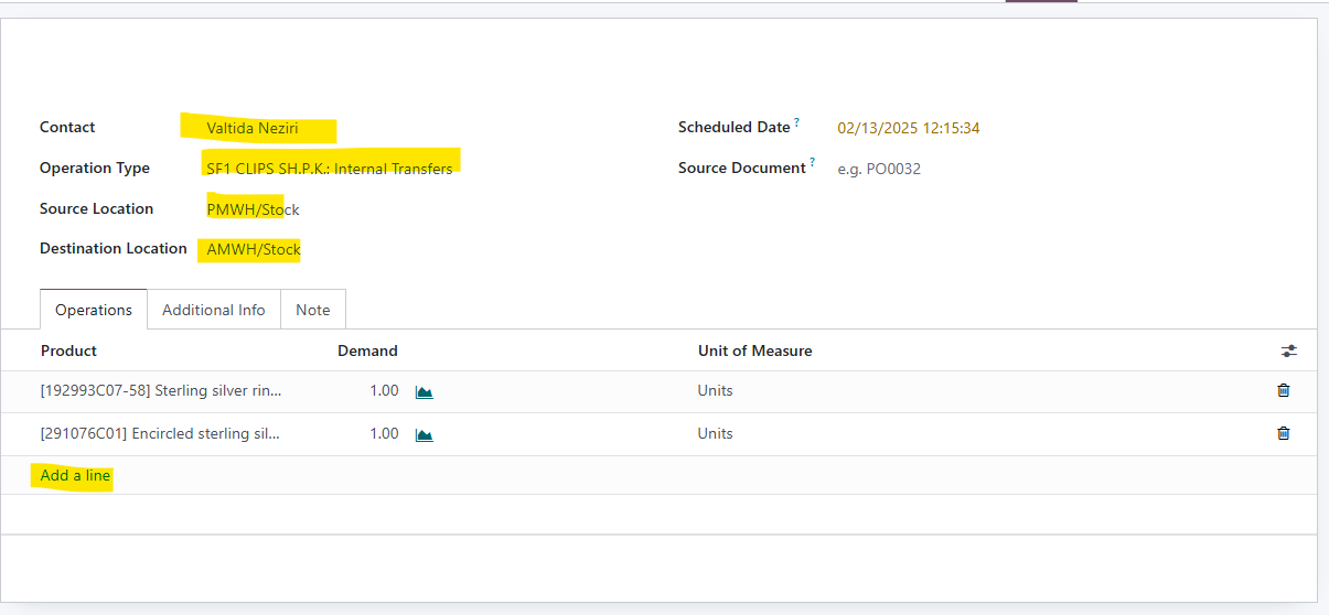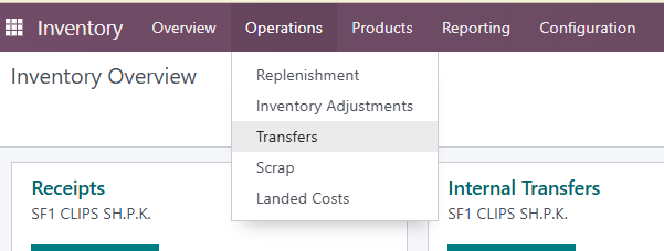 - Operation Type is SF1 CLIPS S.H.P.K Internal transfers