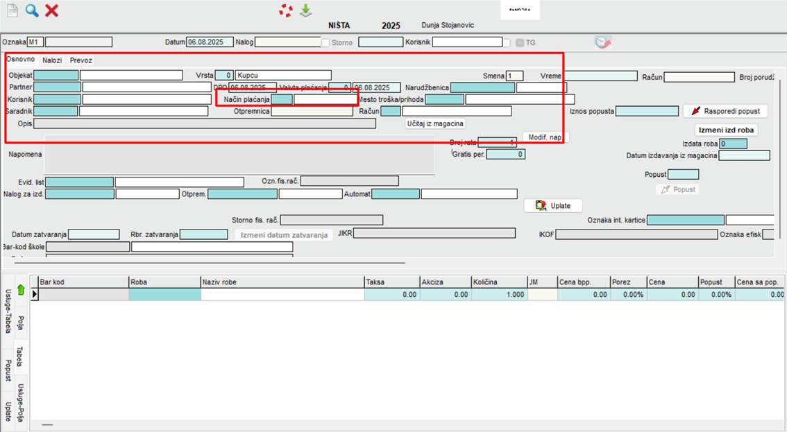 Takođe se pozovemo na predračun kako bismo dobili podatke o kupcu i podatke o robi.