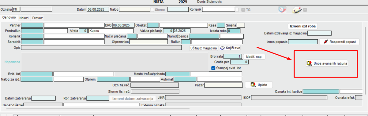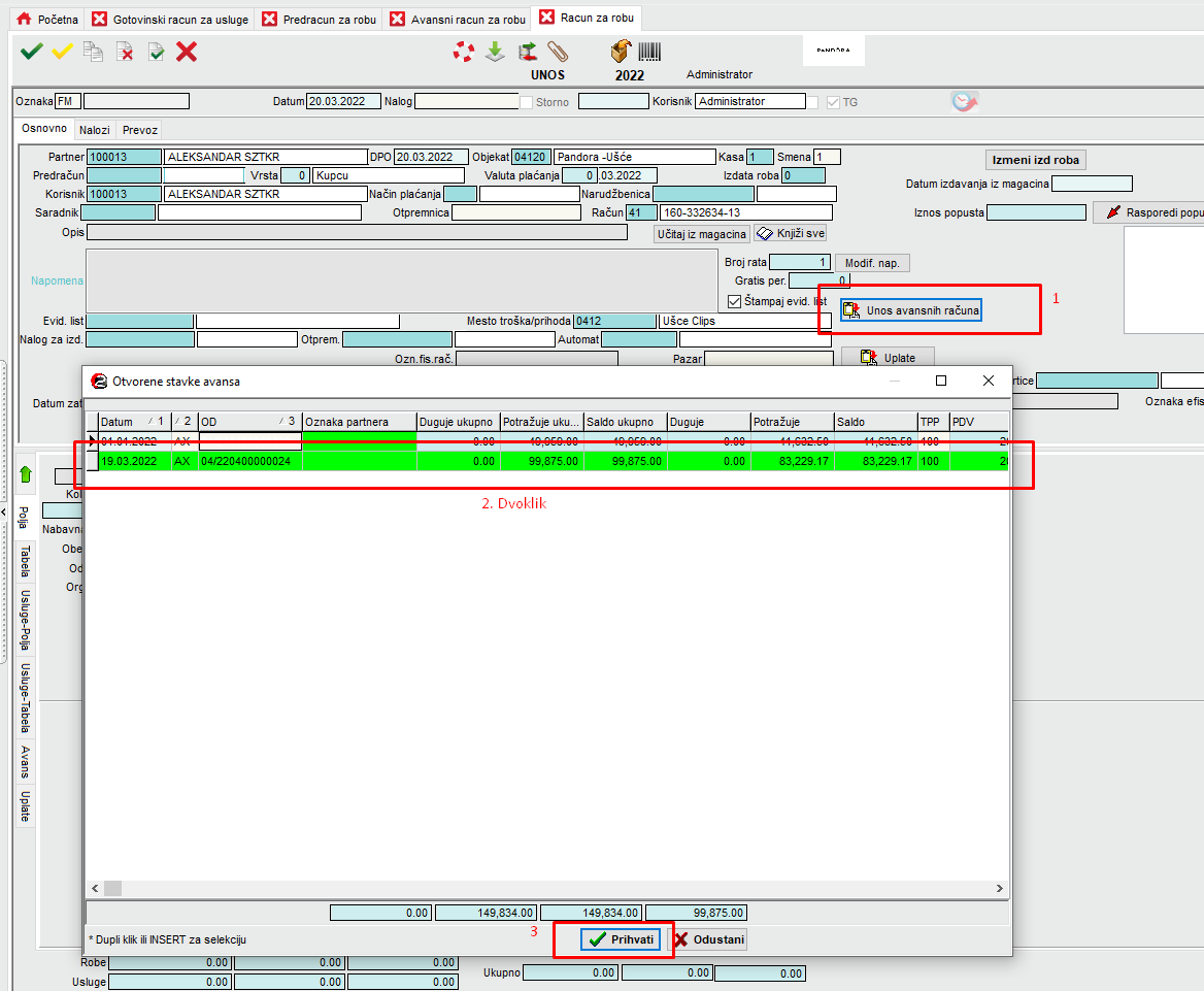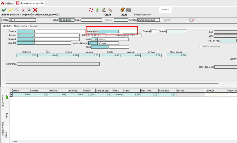 Nalazi se na putanji: Prodaja – Maloprodaja – MaterijalnoFinansijski – Avansni račun za robu