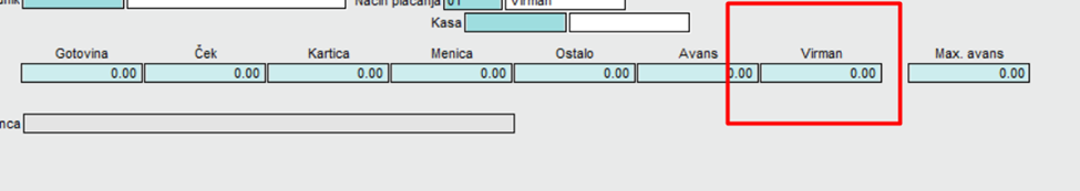 Unesemo kao način plaćanja "Virman" u iznosu u kom je kupac uplatio novac, tj. u ukupnom iznosu predračuna.