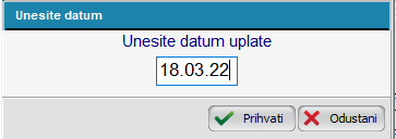 Nakon što kliknemo na zeleni štikl, trebalo bi da nam izađe opcija da unesemo datum kada je uplaćen predračun.