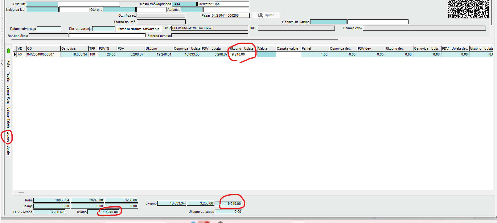 Ukoliko je sve uspešno prošlo, na kasi će izaći slip sa avansnim računom.