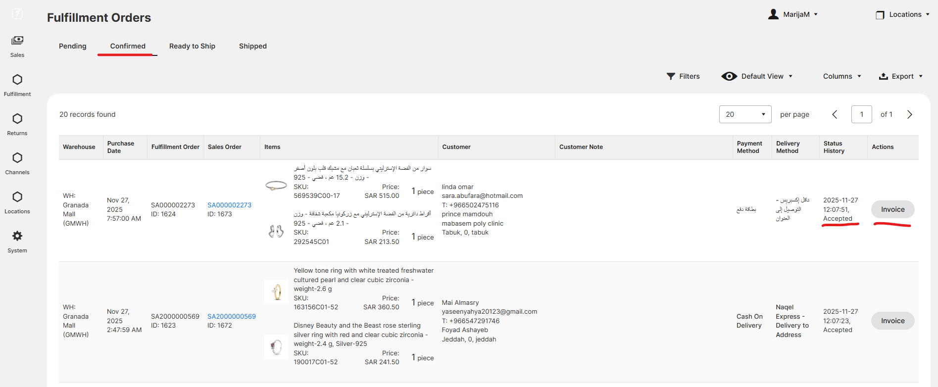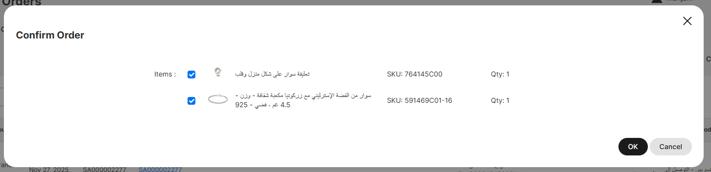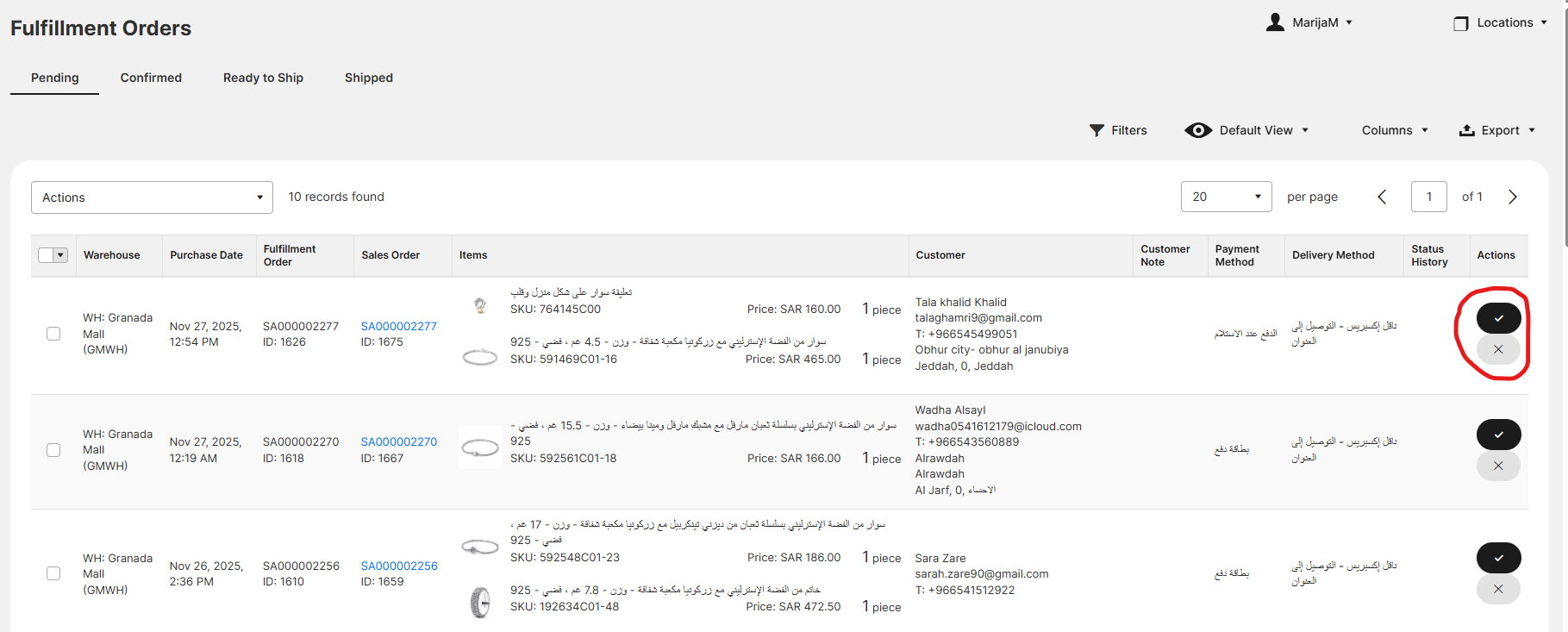 3. These are all unprocessed orders. Find the items in the store, and once you found them click on ✔ button