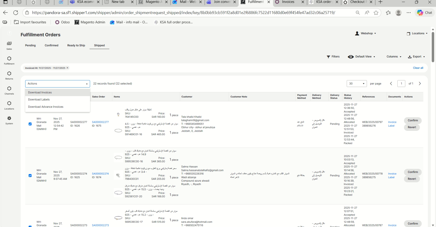 5. Select all the orders and go to Actions "Download Invoices" and then Actions "Download Labels"